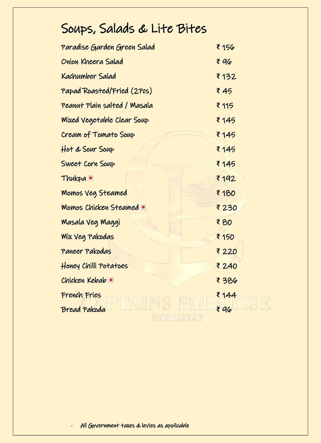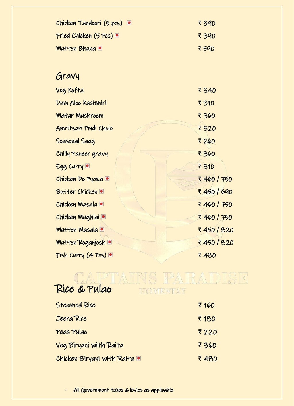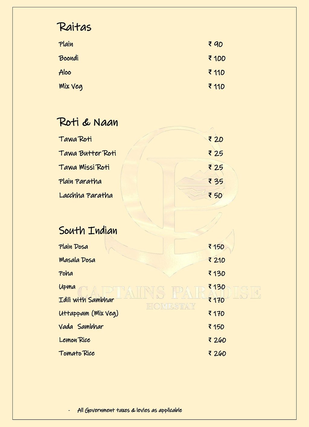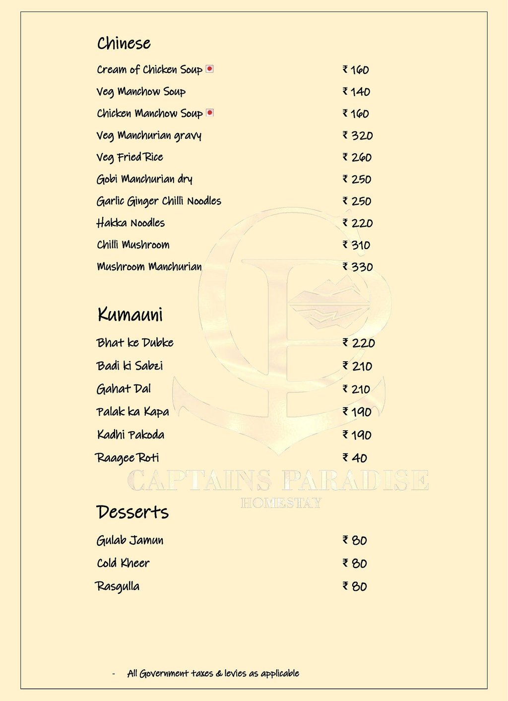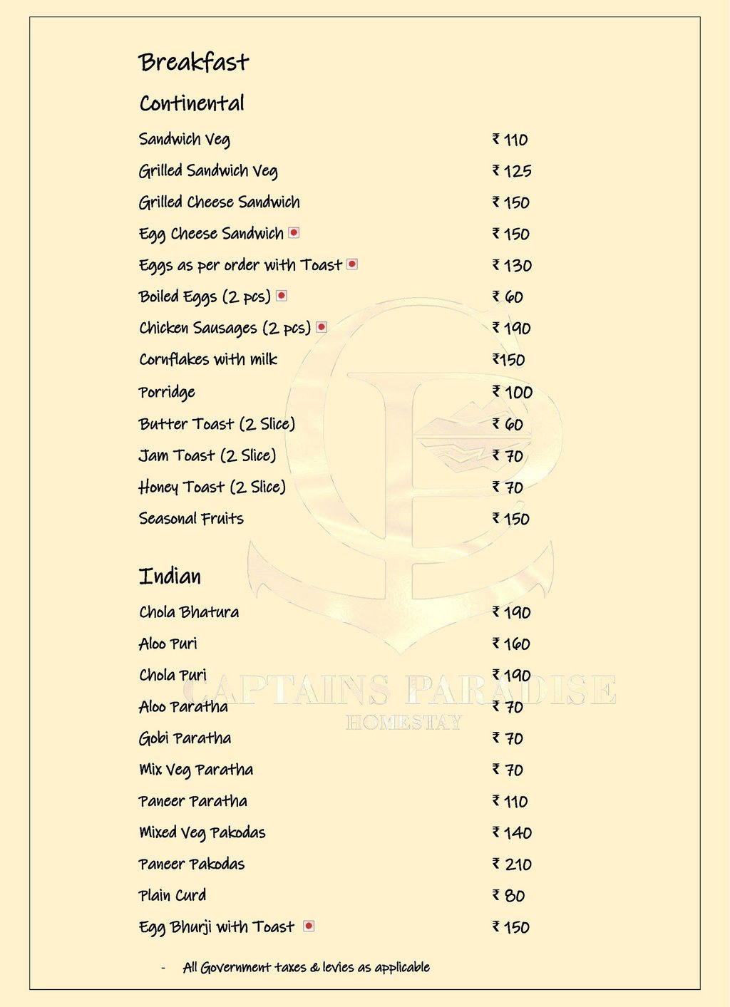 We keep menu limited so that we don't waste food. Due to scarcity of ingredients in local area, we request our guest to pre-inform our chef about your meal plans.