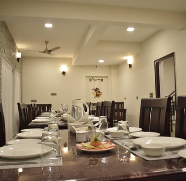 All meals are served in the dining room next to the kitchen. Upon request and weather-permitting, the meals can be served in the balcony to enjoy splendid views of the forests or under a starry sky. Please help us in following the meal timings.